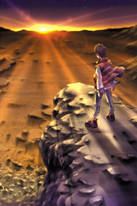 In the early stages of the One Year War, the Principality of Zeon introduced new-type of weapons called mobile suits to the front that boasted superiority to the resource superior Earth Federation Forces. In North America, the Federation’s largest base–the California base–fell to the Zeon’s invasion, leaving the citizens left behind to be placed under their surveillance. Ernest McGuire and his sister Danika, accompanied by their neighbor Van Asiliaino, slip out of California determined to cross the desert and reach the Federation controlled Central America. Ernest was 16 years old. Van and Danika were 12.