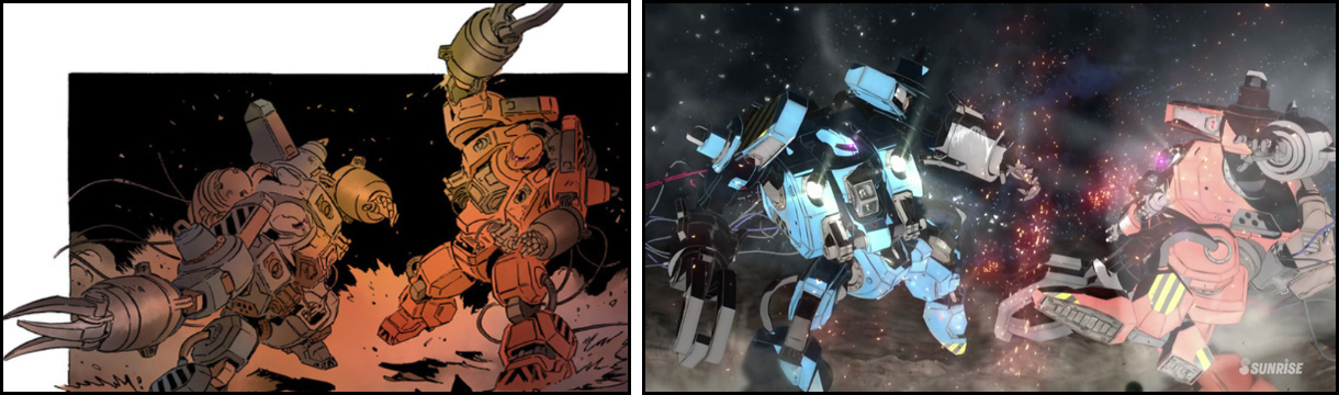 While there were articles here and there referring to this machine, which is a prototype mobile suit, as the MS-01, in the manga it was never referred to as a mobile suit until the end. At the time the setting was settled and it would be appearing in animation, the development number of “MW-01” was agreed upon and it was handled differently from mobile suits.