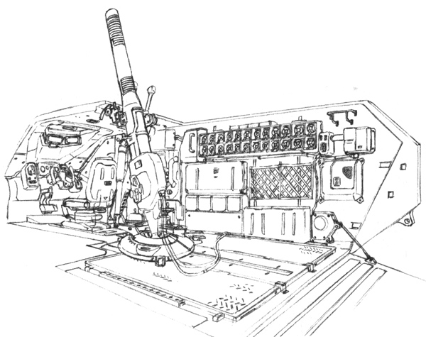 Carrying roughly 5 personnel, it is operated by a driver, a comms officer, a loader, a gunner who focus on a commander who confirms the target and conveys shelling direction. The shells are stored in racks on both walls and the loader retrieves them, loads them and fires them one by one.
