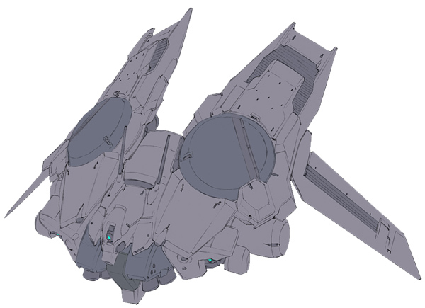 The backpack is equipped with large radome antennas as well as other recon efforts for mobile suits (EWAC unit). These two sets of radome antennas are equipped with the same standard equipment as the Luggun recon plane utilized by the Principality of Zeon during the One Year War. The panel-like blade antenna can also be said to be a characteristic feature shared by recon-use mobile suits. Although it was possible to utilize it regardless of whether it was in space or on the ground while operating in the Earth Sphere, under current Martian conditions it is impossible to recon from the skies. There are instances of it being utilized in ground combat and it removes the rear radome only when it becomes dead weight.