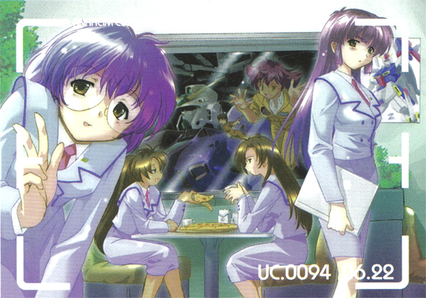 Incidentally this machine, as with the RX-93-V2, had been frozen in development project due to the early end to Char’s Rebellion, but it was later reopened as a next generation candidate for the Earth Federation Space Forces. At that time, the psycho-frame had been omitted because of the fact that its security class had been elevated, and it has even been reported that it had been modulated into a suit limited to the incom equipped type, but there is no solid evidence on this point. What is certain, however, is that an actual unit was completed, and there are records that INCOM tests, etc. were also conducted near the moon. In addition, although a private record, a snapshot printed in “Anaheim Journal” magazine published in U.C.0099, showed the suit accidentally appearing behind female employees of Anaheim Electronics posing for the camera. The snapshot is dated June 22, 0094, which is a vital source of intel in estimating when the machine was manufactured.