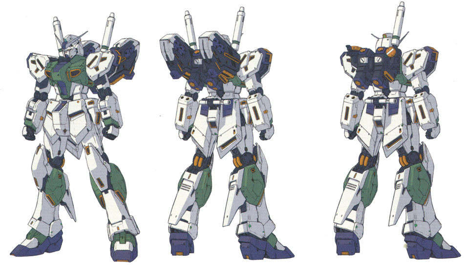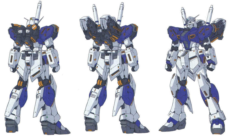 From the above background, the design of the RX-94 consisted of two points: “keeping the basic specs to roughly 80% compared to the RX-93-1” and “being able to select quasi-psycommu weapons that could be operated by non-Newtype pilots.”